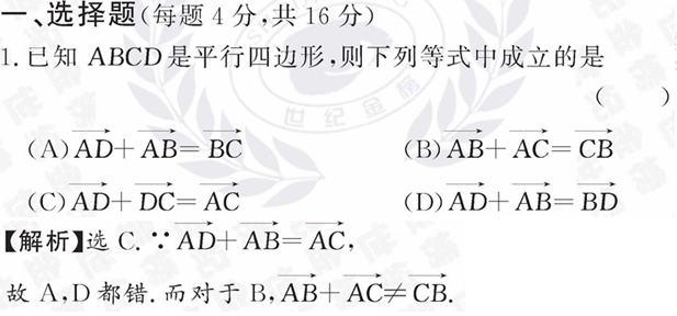 [精练精析]2.2.1向量加法及其几何意义(人教A版必修四)