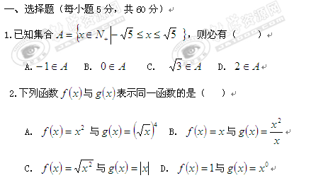 河南省开封市第二实验高级中学10-11学年高一上学期第一次月考(数学)无答案