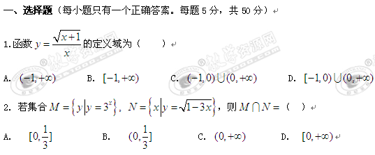 陕西省五环中学2011届高三上学期第一次月考(数学理)缺答案