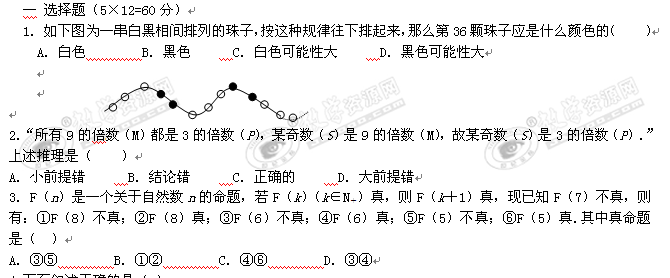 数学:《推理与证明》测试5(新人教A版选修1-2)