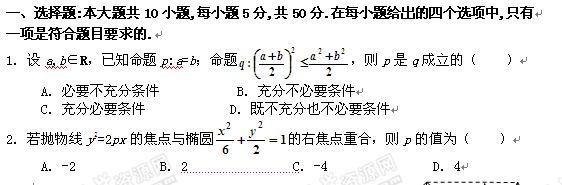 福建省厦门市同安一中2011届高三上学期期中考试(数学理)