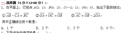 数学:第2章《向量 》测试题(必修4)