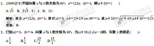 2011届高考数学一轮复习随堂演练:4.3平面向量的数量积及平面向量应用