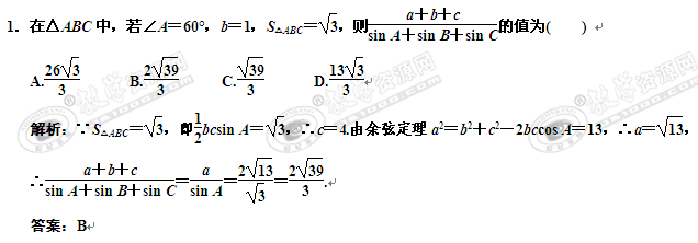 2011届高考数学一轮复习随堂演练:4.6正弦定理和余弦定理