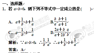 2011届高考数学一轮复习随堂演练:6.1不等关系与不等式