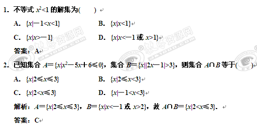 2011届高考数学一轮复习随堂演练:6.2一元二次不等式的解法