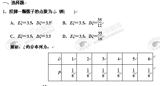 2011届高考数学一轮复习随堂演练:10.8离散型随机变量的期望与方差