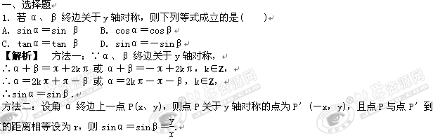 数学:3.2《三角函数公式》课时训练(北师大版)