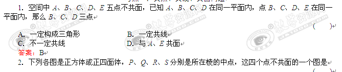 2011年高考数学二轮复习提前练:9-1平面和空间直线