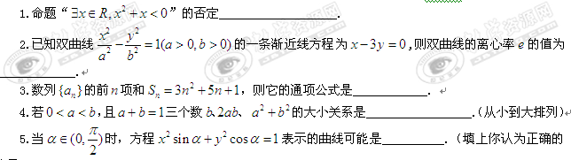 江苏省滨海中学10-11学年高二上学期期末考试(数学理)