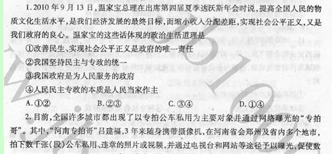 河南省信阳市2011届高三毕业班第二次调研考试(政治)扫描版