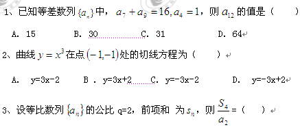 辽宁省抚顺市六校联合体10-11学年高二上学期期末考试(数学文)