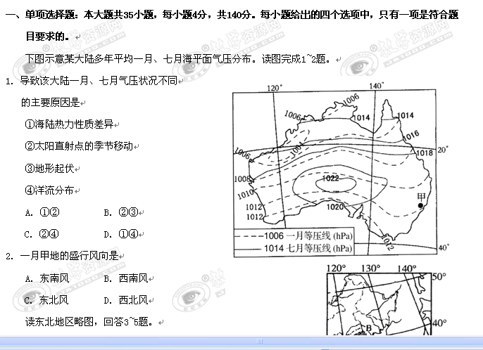 2011届汕头市普通高中毕业班教学质量监测试题(文综)