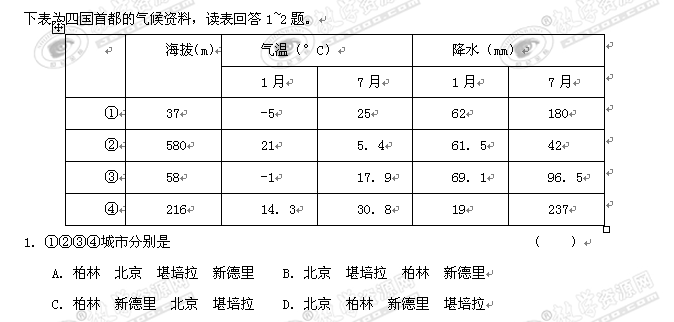 河北冀州中学2010—2011学年高三年级上学期期末考试试题(文综)