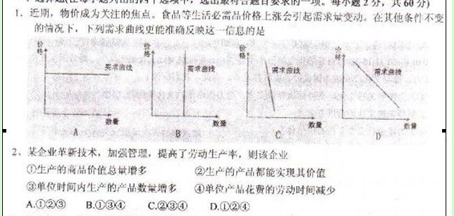 山东省聊城一中2011届高三上学期期末考试(政治)扫描版
