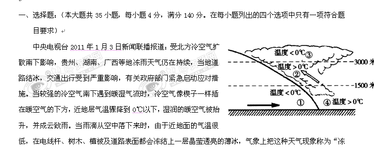 广东省深圳中学、广雅中学2011届高三上学期期末四校联考(文综)