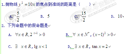 黑龙江省哈六中10-11学年高二上学期期末考试(数学理)