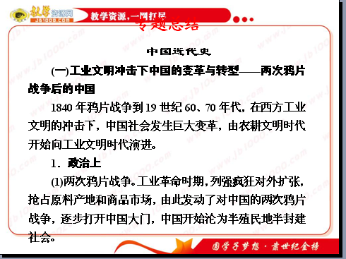 2011届高三历史二轮复习课件:专题三 中国近代史 专题总结(新课标版)