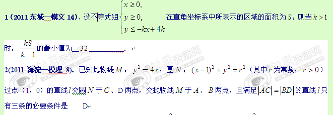 2011年北京市各区一模数学试题分类解析(11):线性规划、直线与圆的方程