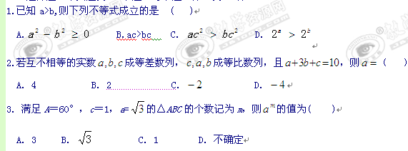 河北省保北十二县市2010-2011学年高一下学期期中联考(数学)