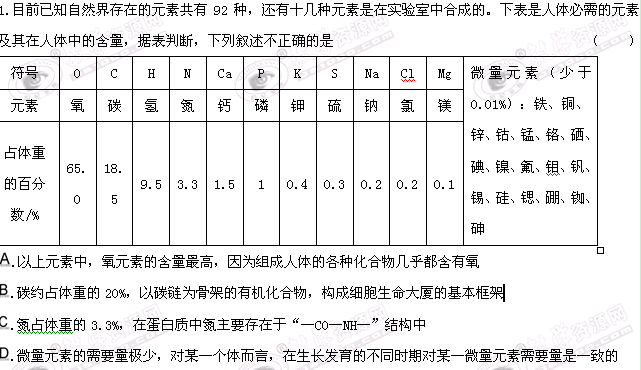 世纪金榜2011年高考生物原创预测题:专题一 生命的物质基础、细胞与细胞工程(老人教)