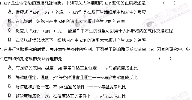 世纪金榜2011年高考生物原创预测题:专题二 生物的新陈代谢(老人教)