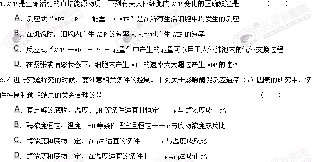 世纪金榜2011年高考生物原创预测题:专题二 细胞的代谢(新课标)