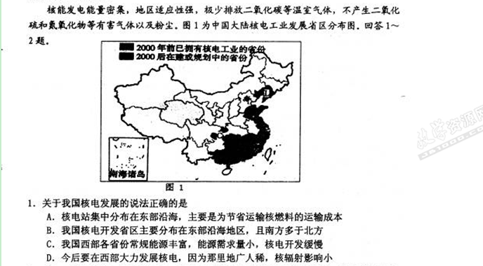 辽宁省部分重点中学协作体2011届高三模拟考试(文综)(扫描版缺页)