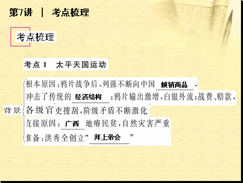 历史:第7讲《太平天国运动、辛亥革命和五四运动》2012一轮复习方案课件(岳麓版)