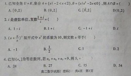 山东省曲阜师范大学附属中学10-11学年高二下学期期末考试(数学理)扫描版