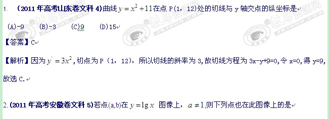 2011年高考真题解析数学(文科)分项版03函数与导数