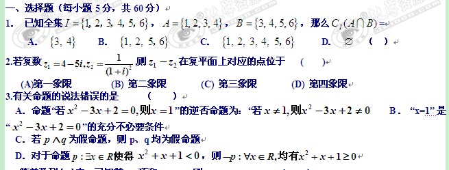 河北省冀州中学2012届高三上学期期中考试(数学文A)