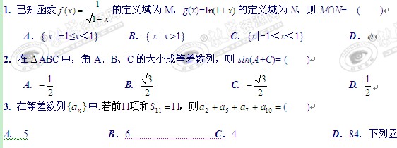 福建省泉州市一中2012届高三上学期期中考试(数学理)