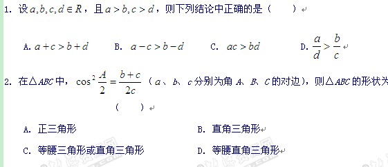 山东省冠县武训高中11-12学年高二上学期期中考试(数学)