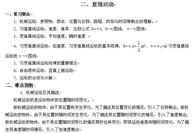 高考总复习物理资料:直线运动