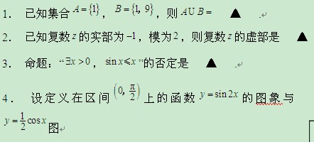 江苏省2012届高三数学二轮专题训练:填空题(1)