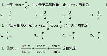 江西省信丰二中高一数学《三角函数》目标测试题三