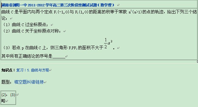11-12学年高中数学月考、期中等考试试题分类汇编:曲线与方程