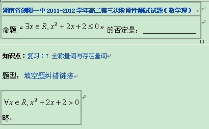 11-12学年高中数学月考、期中等考试试题分类汇编:全程量词与存在量词