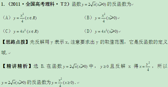 金榜2011高考真题分类汇编:考点3映射、函数及反函数(大纲版地区)