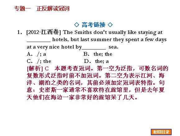 北师大版2014届高三英语一轮语法精品课件:专题1正反解读冠词