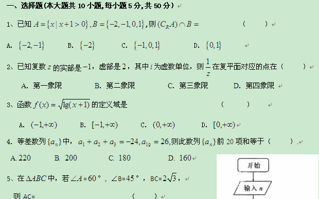 广东省紫金县中山高级中学2014届高三上学期第三次段考(数学文)