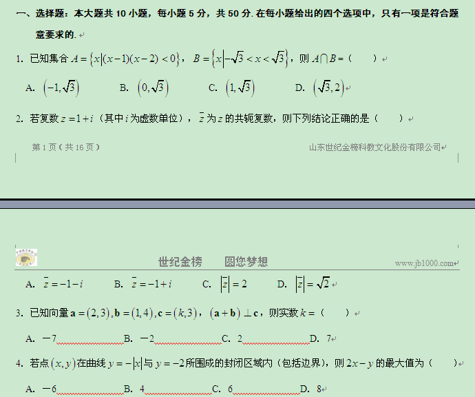 免费试卷