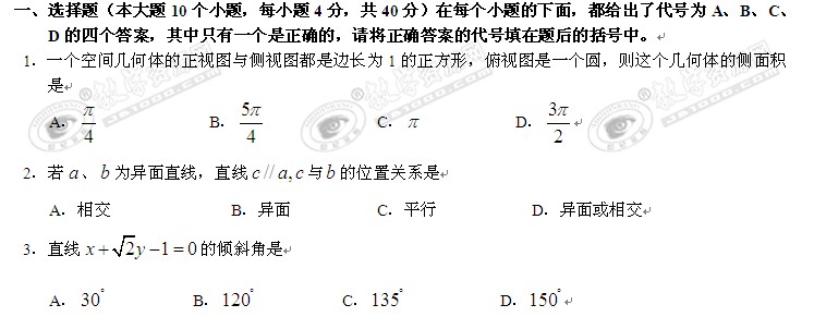 安徽省芜湖市09-10学年高二上学期第一学段模块测评(数学B)