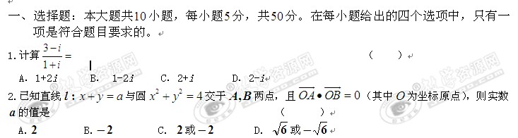 浙江省台州中学2010届高三上学期第三次统练(数学文)