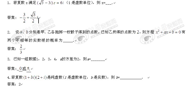 江苏省栟茶高级中学2010届高三数学填空题专项训练(1-4)
