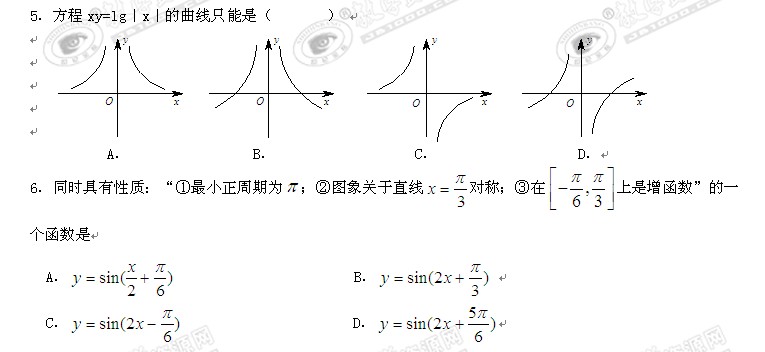 江西省于都实验中学2010届高三上学期周练五(数学理)