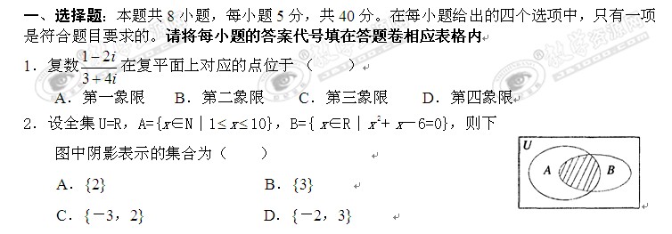 广东省珠海市第四中学2010届高三上学期12月月考(数学理)