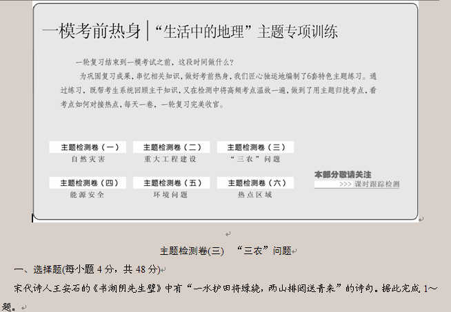 (鲁教版)2015届高三高考一模考前热身“生活中的地理”主题检测卷(三):“三农”问题(word版,含解析)