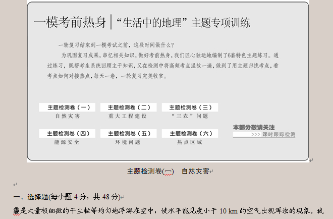 (鲁教版)2015届高三高考一模考前热身“生活中的地理”主题检测卷(一):自然灾害